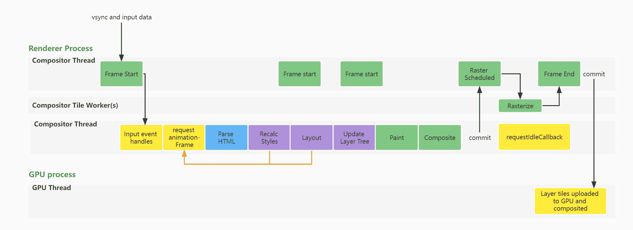 注意:requestAnimationFrame 的回调会在每一帧确定执行,而 requestIdleCallback 的回调则不一定在每一帧都执行。